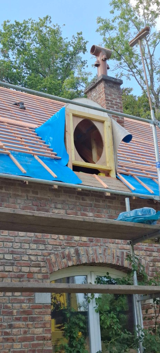 Nous commençons par la charpente, véritable ossature de votre maison. Une fois celle-ci contrôlée et renforcée si nécessaire, nous installons les éléments indispensables à une couverture solide : pare-vapeur, lattes et contre-lattes. Ensuite, nous posons le matériau de couverture choisi, qu’il s’agisse de tuiles, d’ardoises ou de zinc. Pour les toitures plates, nous travaillons également avec l’EPDM, un revêtement performant et résistant.