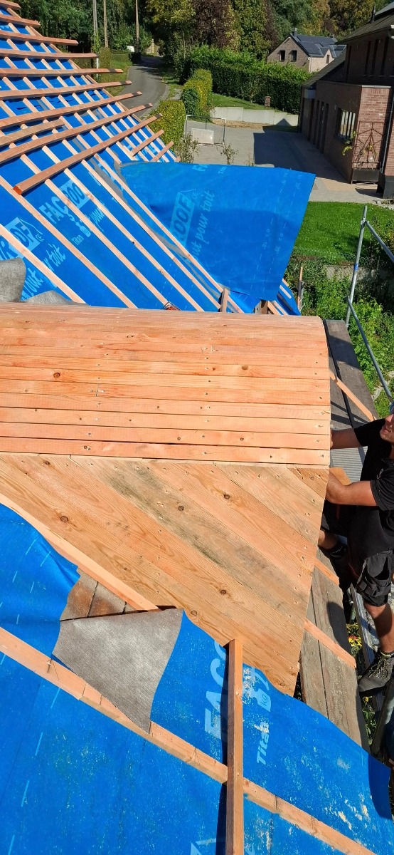 Notre entreprise de toiture réalise vos travaux de couverture à Nassogne, Namur et dans la région liégeoise. Que vous ayez une toiture inclinée ou une toiture plate, nous vous proposons des solutions adaptées à vos besoins. Nous travaillons avec différents matériaux comme les tuiles, les ardoises, le zinc ou encore l’EPDM, un revêtement moderne pour les toitures plates.