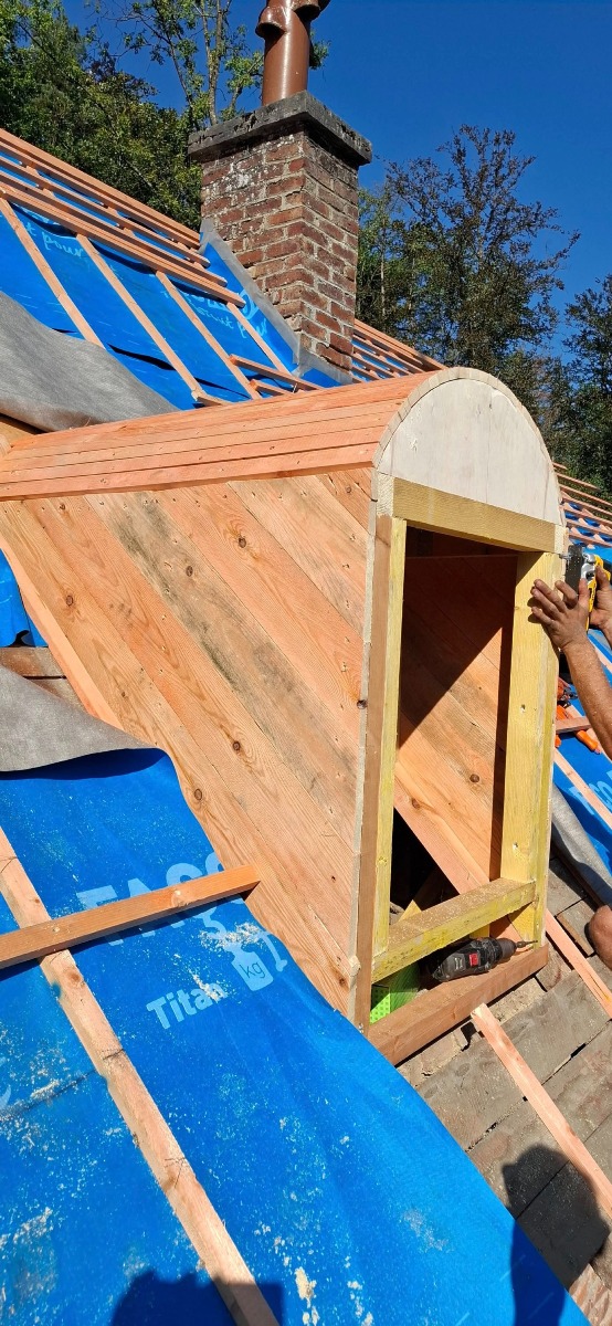 Chaque projet de couverture débute par un travail sur la charpente. Nous veillons à ce que votre structure soit solide et parfaitement préparée avant de poser les lattes, contre-lattes et pare-vapeur. Cette étape est essentielle pour assurer la durabilité de votre toiture et une isolation optimale.
